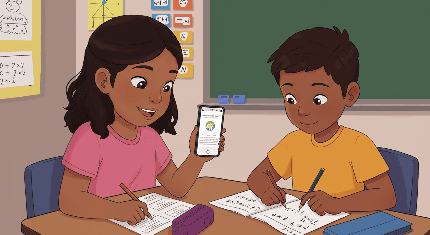 After solving the problem, her teacher asks her to turn and share her strategy with a partner. She panics, but remembers that she can use TT to help!